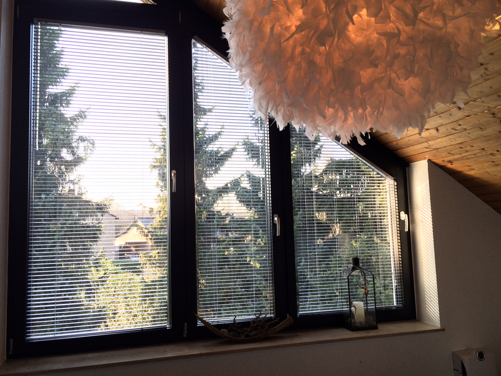 Von der Küche aus haben Sie einen schönen Blick durch den ganzen Raum bis ins Wohnzimmer mit anliegender Terrasse. Die vielen Fenster im Erdgeschoß sind bodentief.