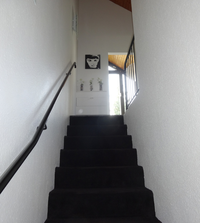 Vom Erdgeschoß geht es über eine Treppe in die 1. Etage.