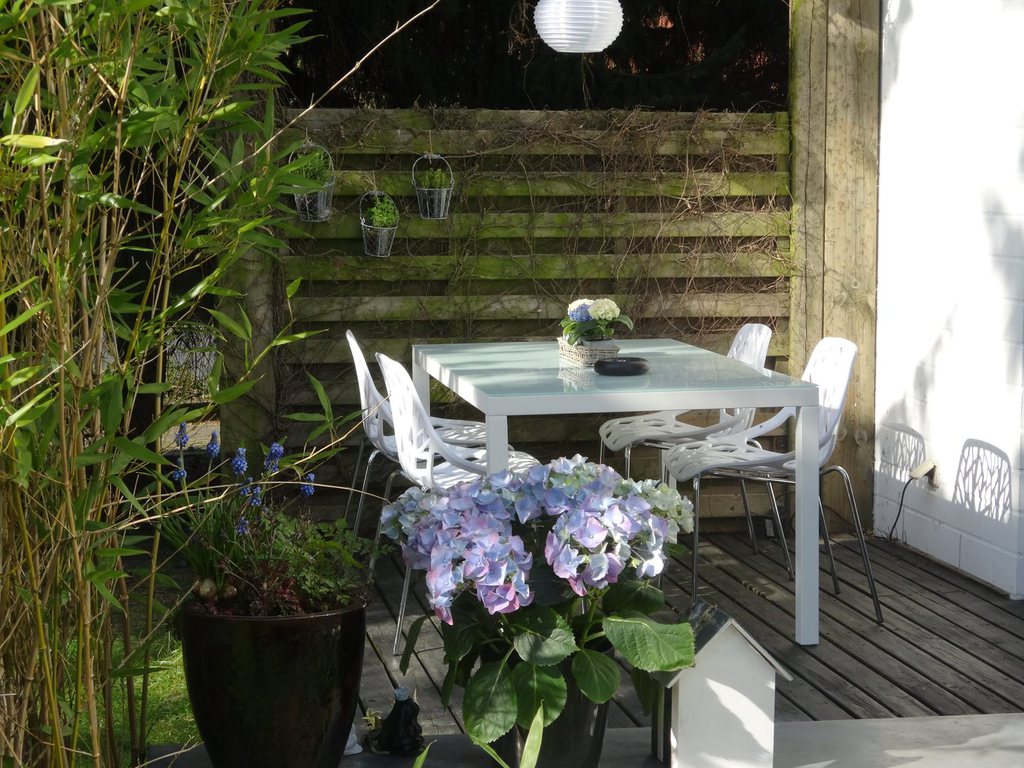 Die grosse Holzterrasse steht Ihnen zur alleinigen Nutzung zur Verfügung. Von hier haben Sie einen traumhaften Blick in den 700qm grossen Garten. Von der Strasse ist die Terrasse, dank der grossen Tannen und einem Holzsichtschutz, nicht einsehbar. Hier können Sie den Tag wunderschön ausklingen lassen.